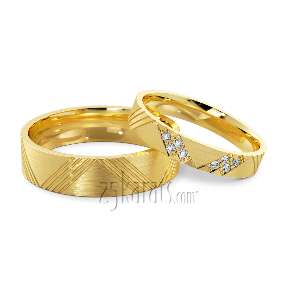 Diagonal Cut Diamond Lightweight Wedding Band Set