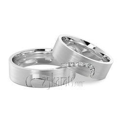 A masterpiece! This lovely 6mm wide unique heart wedding ring set features two pieces of heart designs complement each other. The diamond band is set with 8 round-cut diamonds totaling 0.08ct. Both half-heart designed wedding rings are high polished with satin finish.