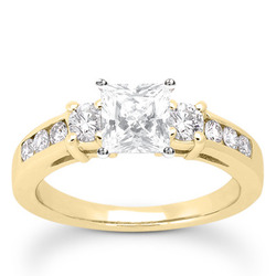 In this astonishing design, 8 sparkling round cut diamonds are set to enhance the beauty of the center stone you choose. This diamond engagement ring is available in white gold, yellow gold, platinum or palladium.