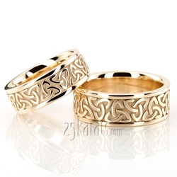 This gorgeous Celtic wedding band set has Celtic knots at the center. This wedding band is available in 7, 8, 9, 10mm. The band is high polished.